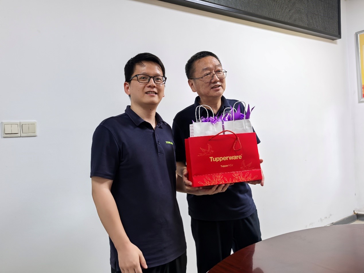 最后,特力液壓技術(shù)分工會主席周磊為劉軍同志送上了精心準(zhǔn)備的退休紀(jì)念品 ——一對滿載公司與同事之前溫情的保溫杯,并與劉軍同志合影留念,將這一溫馨時(shí)刻永久定格。